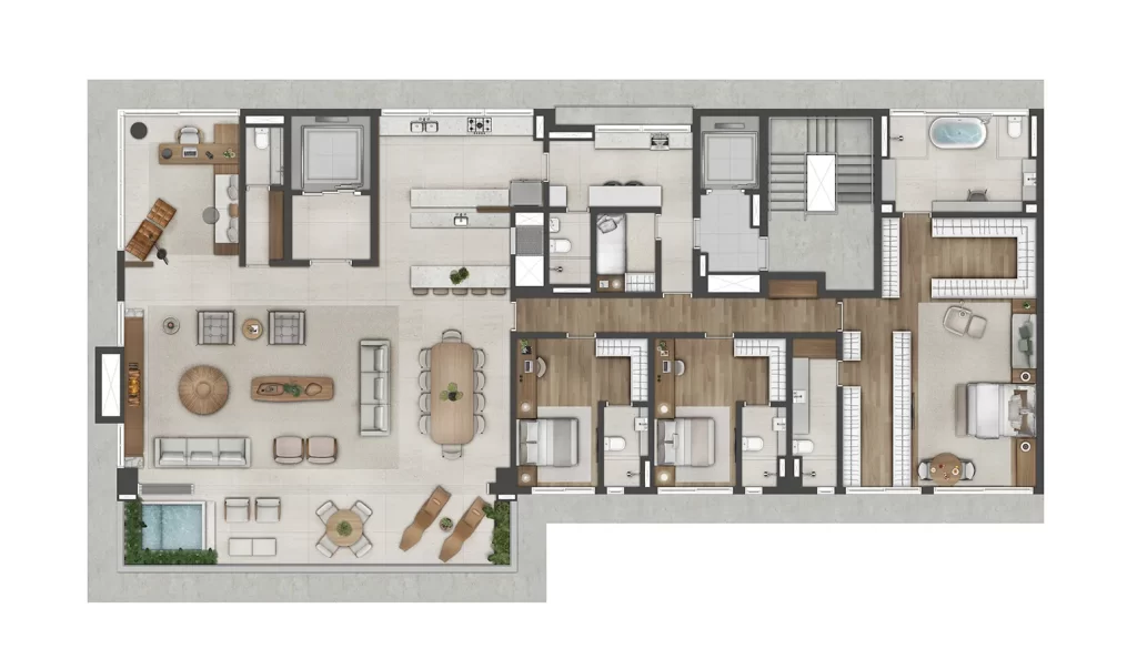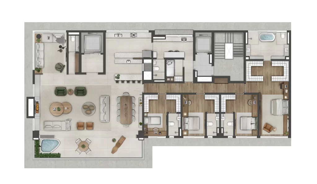 Arte Cidade Nilo, lançamento da construtora Melnick, no coração do bairro Bela Vista, endereço mais desejado da cidade, de frente à praça da Encol. Amplo apartamento com 275 m2, 03 suítes, espaçoso living com lavabo, lareira, churrasqueira e sacada. Cozinha americana, área de serviço independente, dependência completa. 03 vagas de garagem + depósito. Infra estrutura completa de lazer e segurança.